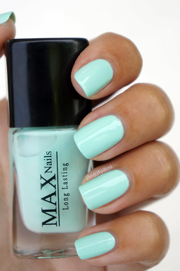 Mint groen was de kleur deze zomer,maar een perfect dekkende kleur vinden was niet zo gemakkelijk kan ik je vertellen.Essence had er wel een in de collectie maar de lak van MAX heeft een prachtige mix van mint groen met en vleugje blauw.Deep Sea dekt prima in twee laagjes.